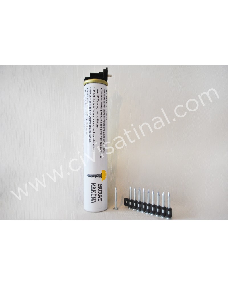 Kofac, Akdeniz,Ejot Tezmak, Hofmann, Nail, Senco, Redhit, Berner, Fixpro, Forfix, Expandet, Notus, BEA çivi tabancaları ile uyumlu 165mm boyutunda, 1100-1300 atımlıktır. (Gazımız Hilti-Spit-Wurt-Dewalt Hariç bütün markalar ile uyumludur).